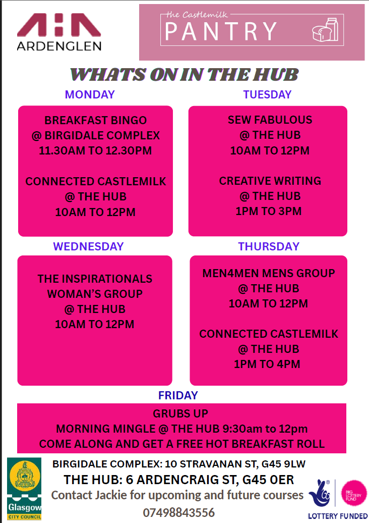 It’s located within the Birgidale Complex, 10 Stravanan Street, Castlemilk, Glasgow, G45 9LW.